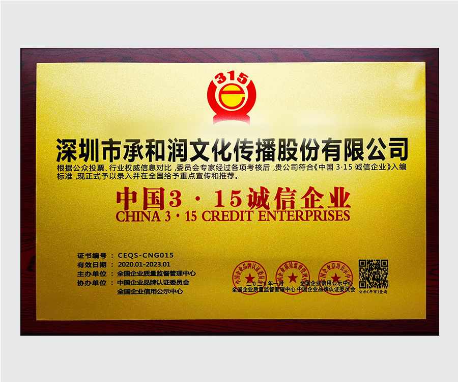 中國3.15誠信企業(yè)稱號